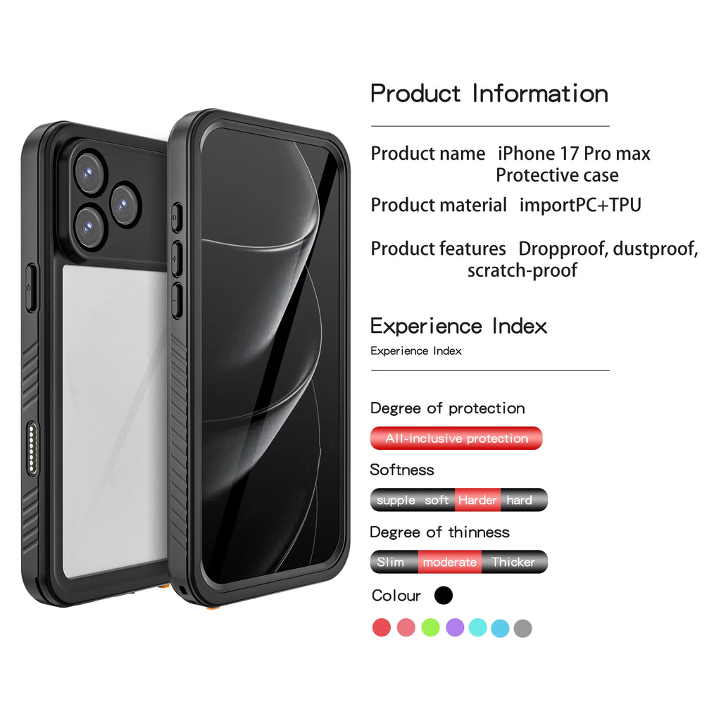 Waterproof Case for iPhone 17 Pro Max – Full Body Shockproof Magnetic Cover with Built-in Screen Protector (IP68 Rated)