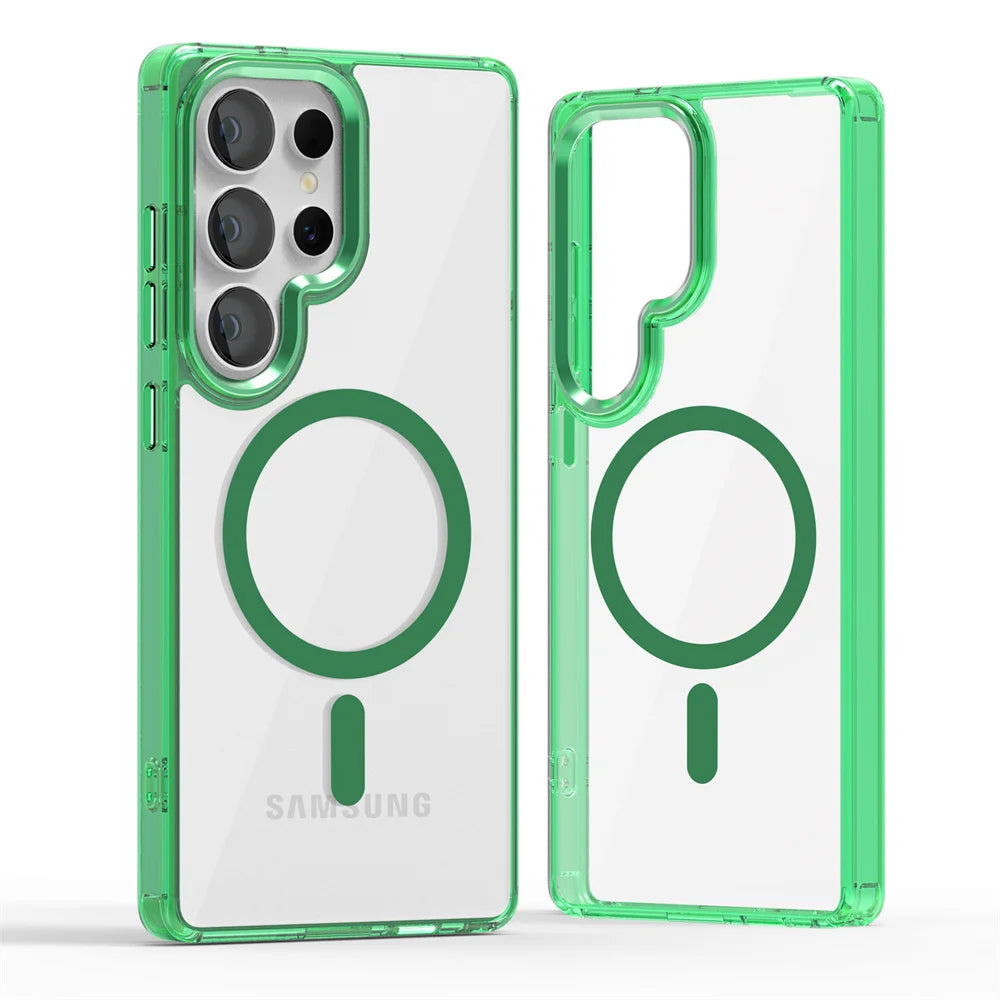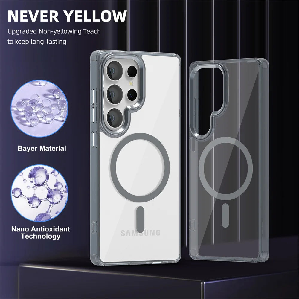 Luxury Magnetic MagSafe Case for Samsung – Shockproof Translucent Armor Cover with Camera Protection